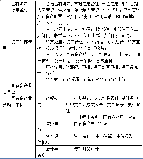 主(zhu)要(yao)業務包含:國(guo)有資(zi)產卡片管(guan)理;資(zi)產購置(zhi)及審(shen)批;國(guo)有資(zi)產領用、入庫(ku)、變動及審(shen)批;資(zi)產出(chu)租出(chu)借(jie)、擔保抵押、對外投(tou)資(zi)及審(shen)批;國(guo)有資(zi)產轉讓、捐贈、劃轉、置(zhi)換、報廢報損(sun)與核銷(xiao)及審(shen)批。