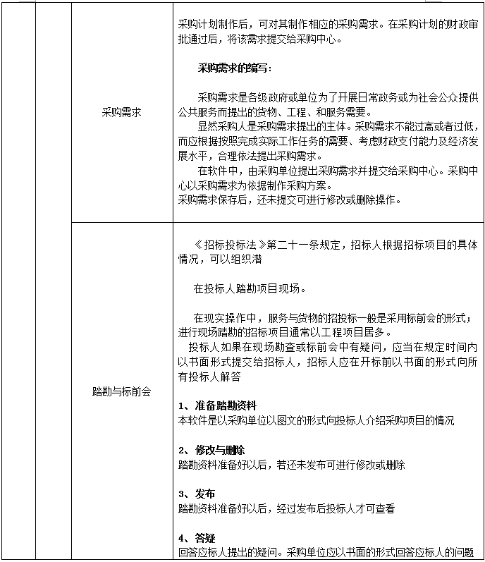 采購(gou)(gou)單位信息、采購(gou)(gou)預算(suan)、采購(gou)(gou)計劃、采購(gou)(gou)需求(qiu)、踏(ta)勘與標(biao)前會、采購(gou)(gou)現場、查看定標(biao)、采購(gou)(gou)合同(tong)、驗收