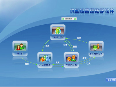 系統是通(tong)過對共用數據的(de)采集,為學(xue)校(xiao)的(de)物(wu)(wu)流教(jiao)學(xue)信(xin)息(xi)提供(gong)(gong)(gong)基礎支(zhi)撐(cheng)信(xin)息(xi),滿足(zu)學(xue)校(xiao)對供(gong)(gong)(gong)應鏈對物(wu)(wu)流的(de)教(jiao)學(xue)需求,支(zhi)撐(cheng)物(wu)(wu)流教(jiao)學(xue)中各種功(gong)能(neng)的(de)實現;同時通(tong)過共享信(xin)息(xi)支(zhi)撐(cheng)學(xue)生(sheng)(sheng)在(zai)(zai)實驗室、在(zai)(zai)家、在(zai)(zai)任何地點的(de)學(xue)習。系統除了強大的(de)原(yuan)材料供(gong)(gong)(gong)應商-供(gong)(gong)(gong)應商-經(jing)銷商-物(wu)(wu)流公(gong)司-客戶的(de)處(chu)理能(neng)力以(yi)外(wai),還(huan)具(ju)有后臺(tai)的(de)班級管(guan)(guan)理、學(xue)生(sheng)(sheng)管(guan)(guan)理、知識(shi)庫(ku)管(guan)(guan)理、題庫(ku)管(guan)(guan)理、考試(shi)(shi)管(guan)(guan)理、試(shi)(shi)卷管(guan)(guan)、師生(sheng)(sheng)交流管(guan)(guan)理、經(jing)營分析等功(gong)能(neng),使(shi)教(jiao)師利(li)用此系統輕(qing)松進(jin)行知識(shi)傳(chuan)授(shou)、考試(shi)(shi)、師生(sheng)(sheng)知識(shi)溝通(tong)。